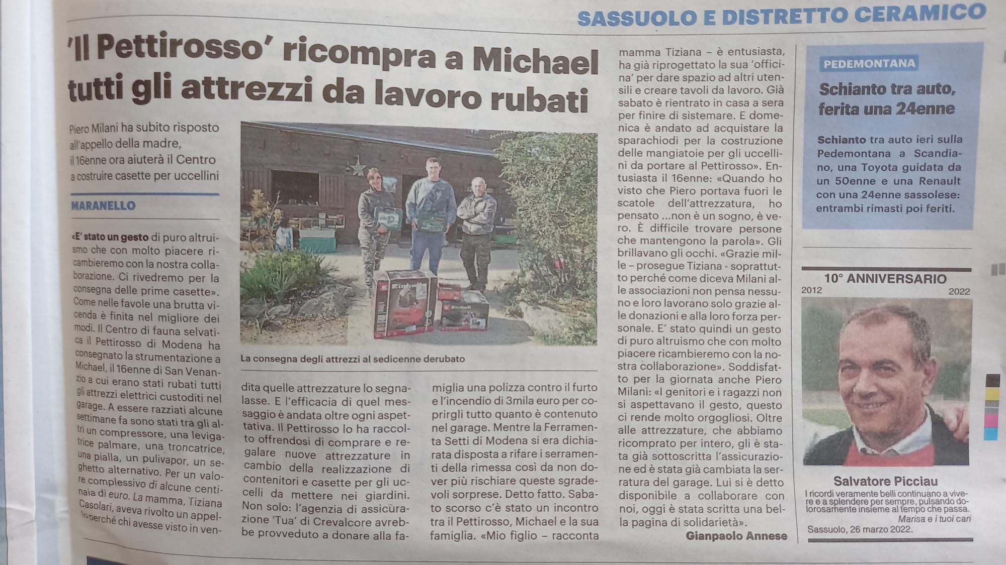26 Febbraio | Solidarietà al sedicenne derubato attrezzi e assicurazione gratis | Il Resto del Carlino Modena