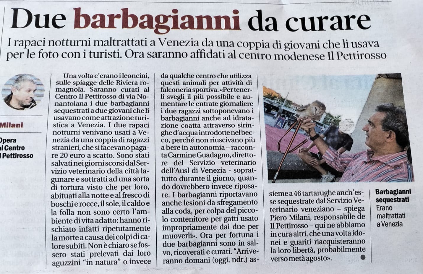 21 Ottobre | Arrivati al Pettirosso di Modena i barbagianni salvati a Venezia | Modenaindiretta.it