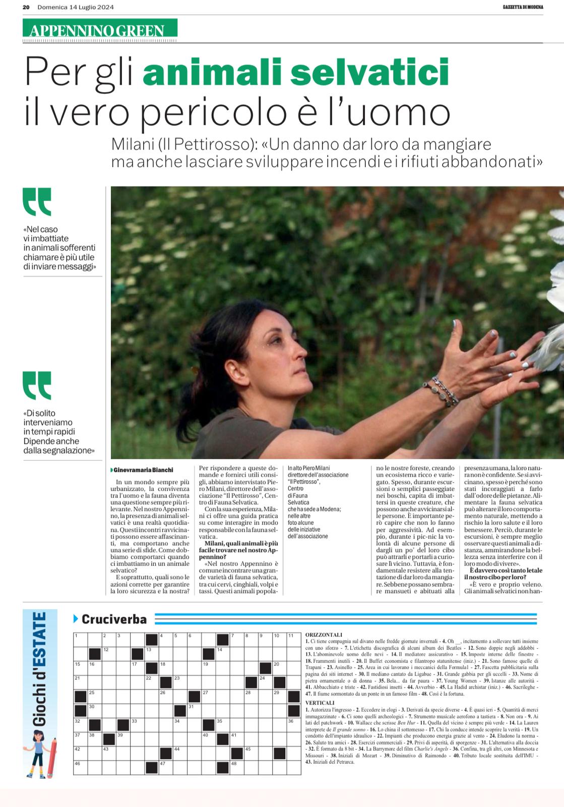 14 Luglio | Per gli animali selvatici  il vero pericolo è l’uomo | Gazzetta di Modena pag.1