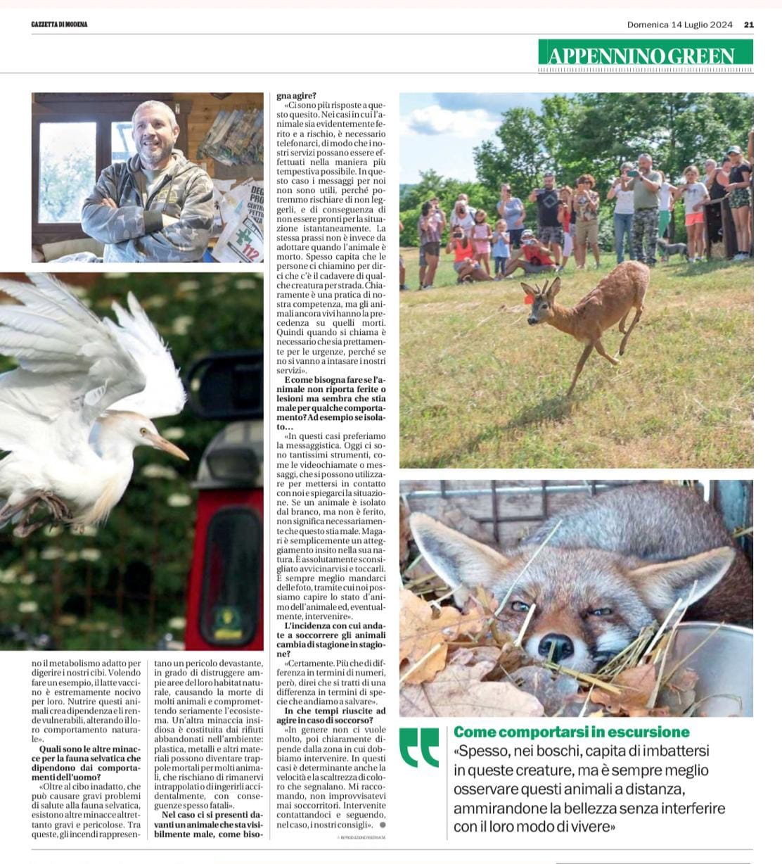 14 Luglio | Per gli animali selvatici il vero pericolo è l’uomo | Gazzetta di Modena pag.2