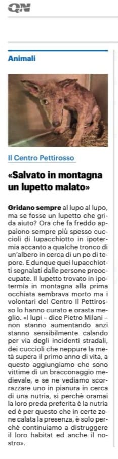 17 Novembre | Salvato in montagna un lupetto malato | Resto del Carlino