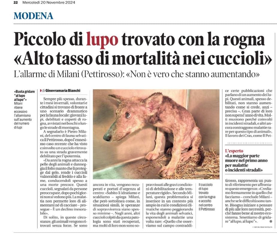 19 Novembre | Piccolo di lupo trovato con la rogna:< Molti cuccioli morti per questo> | Gazzetta di Modena